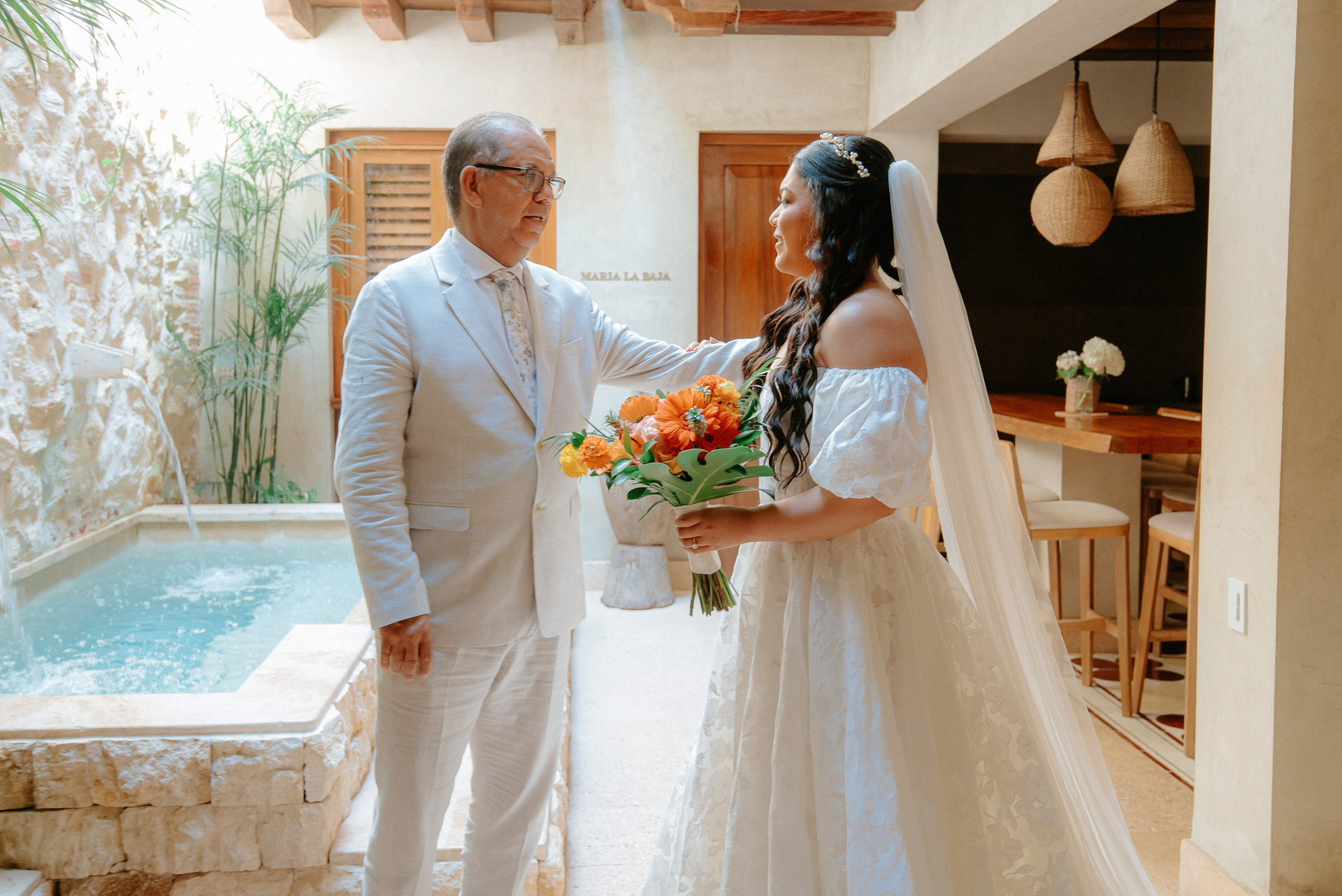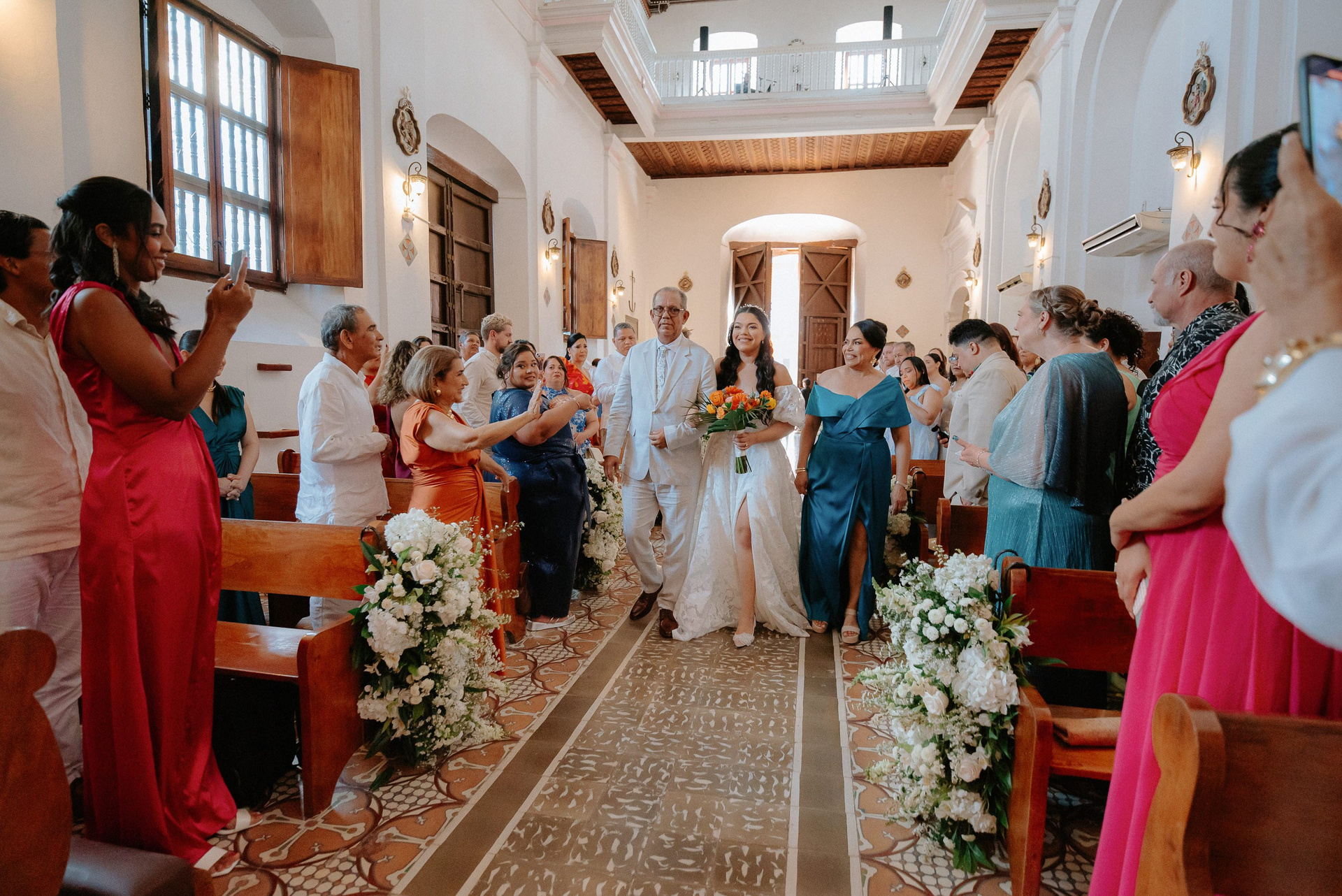 Cartagena became the place where both of ther worlds could meet.Where family could travel, embrace, celebrate and finally exist in the same space — under warm Caribbean light, surrounded by color, history and ocean air. Their wedding wasn’t only a celebration of love.It was a gathering of roots, journeys and generations coming together in one place that felt alive, welcoming and full of meaning. From quiet moments before the ceremony to the joy that filled every street they walked, everything unfolded naturally — warm, emotional and deeply human.