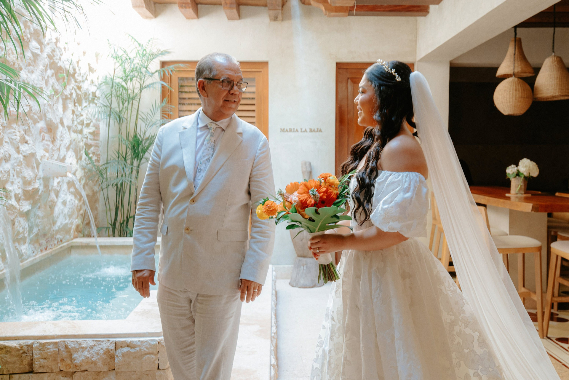 Cindy is Colombian. Garrett is from Canada.Their story lives between cultures, distances and shared dreams — and one of those dreams was always clear: getting married in Cartagena. Not just for the beauty of the city… but for what it would make possible.